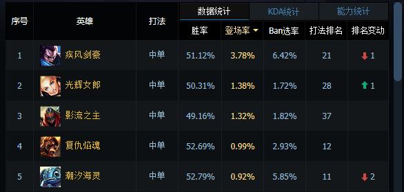 上图是TGP今日的中单数据截图,可以看出火男在中单位置上的出场率达到0.99%位列第四名,在如此高的登场率背后火男还有高达52.69%的胜率,这是非常难得的一件事。一般而言,一个英雄如果出场率和胜率都非常高,那么这个英雄用来上分是非常稳妥的。