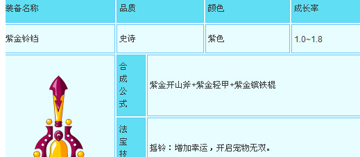 至于造梦西游3中紫金铃铛的作用则是增加幸运,可以让宠物开启无双。这样的作用对于普遍玩家而言就是福音,这幸运可是包括很多东西,例如掉落装备的几率,算是极品法宝了。由于它并无直接攻击的相关技能,因此最佳属性则是金土属性。