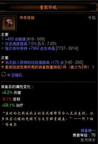 暗黑3华戒怎么刷?华戒是暗黑3所有玩家都想要刷出来的,皇家华戒能够为装备加成非常多的属性,例如每次命中就可以获得7500~9300的血量加长470力量属性;又能减少控场BUFF的CD,最神奇的是,如果套装少一件的话,但有了华戒,少的一件就可以忽略不计,也可以获得套装属性。所以皇家华戒也成为了暗黑3的传奇装备。说了那么多,这里还是来看看暗黑3华戒怎么刷吧。