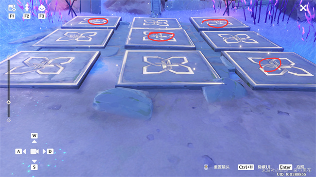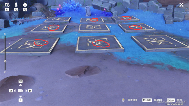 2、有对找图使能够找到的,不想自己解谜的,可以直接按照这个图中的红圈砖块来踩亮,这样就能够完成这个任务的解谜了。