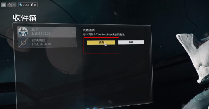 玩家在收件箱中,收到氏族的邀请后,点击接受,即可加入氏族。