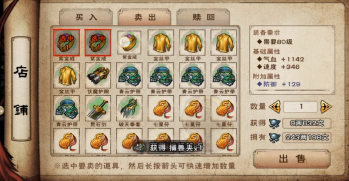 5.出售装备: