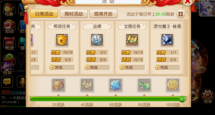 1)日常活动抓鬼任务,每完成一次抓鬼任务都会获得一定量的银币和金币,还能拿到相当多的经验,即使自己的战斗力不足也可以和别人组队一起完成。