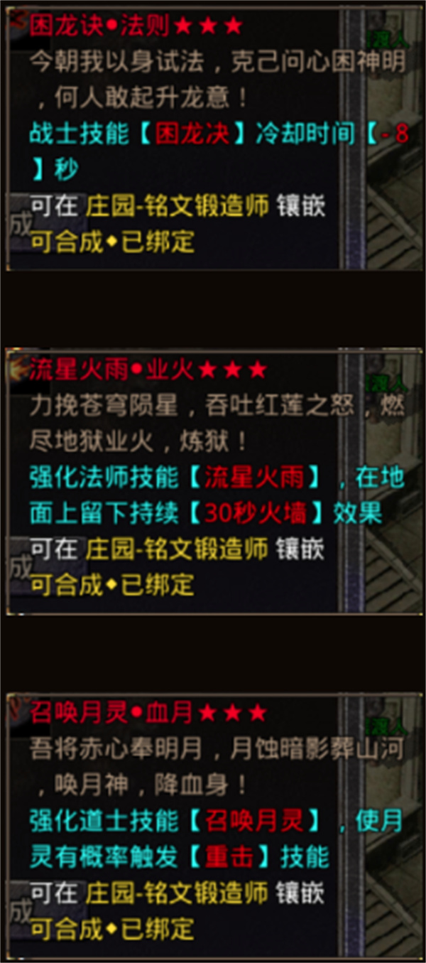 此类铭文可升级,最多可携带3个3级铭文,因此后期需要大量高级荣誉之证。