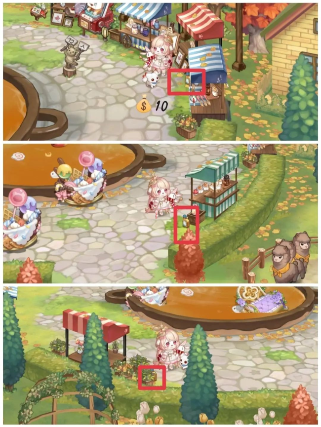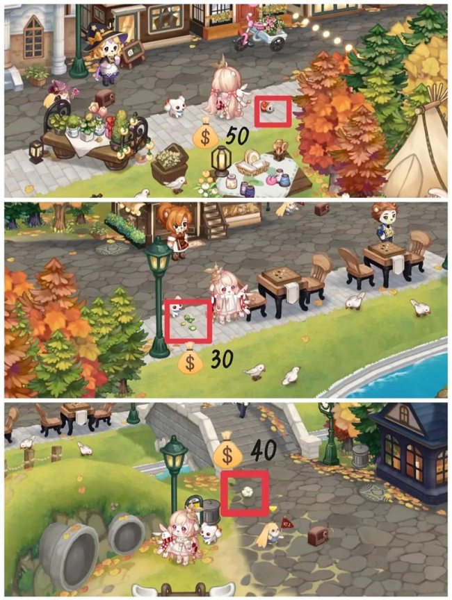 在淘宝街的三个不同的地方可以扫垃圾,总共可赚120金币;