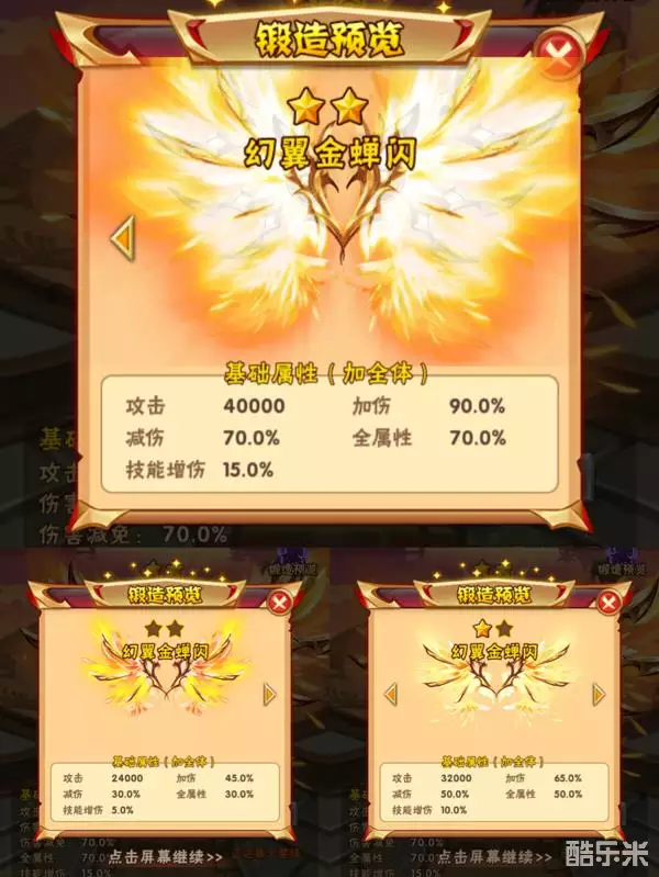 总结:橙色红色有耐心的话可以巡游出,不过比较耗元宝,金色翅膀水晶商店和欢乐抽奖搭配出比较快,暗金翅膀只能通过活动产出。
