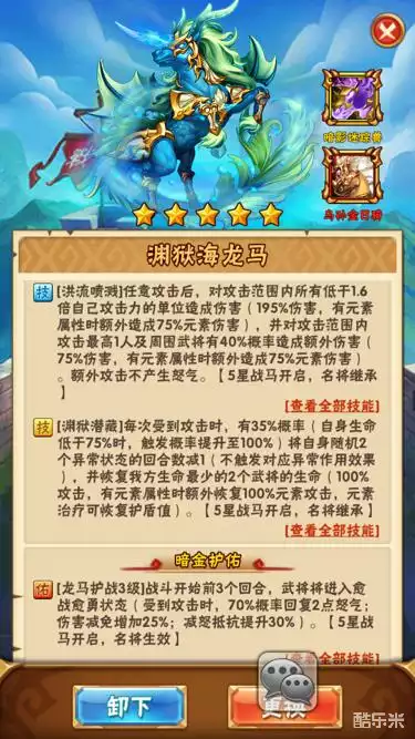战马的玩法比较简单,提升好感度,升星,协同,并驾。