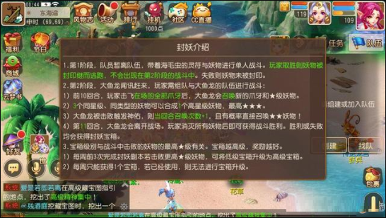 宝图封妖:远古妖怪在M多场景里都有,单刷和组队都行,每天10来次,有银币、经验和东西等等,但必须引起重视的是,地图的等级分怪物的经验。