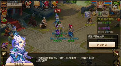 玩家等级要达到35级,开启帮派任务,发布任务的是帮派青龙堂主,完成此任务后就能得到很可观的帮派任务。完成帮派任务的奖励是帮派贡献,这可是学习帮派技能的必备条件。