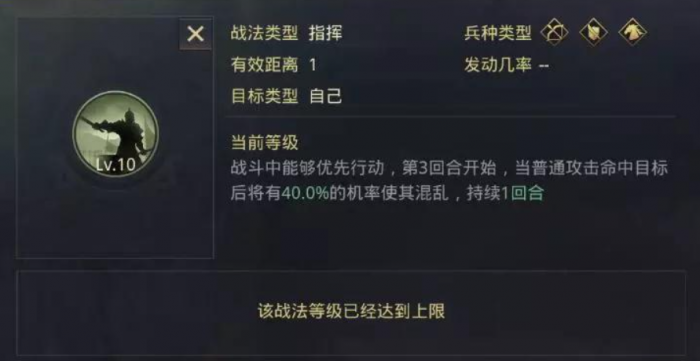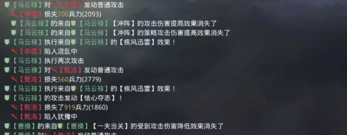 马云禄的【疾风迅雷】效果是在战斗时可以优先行动,第三回合的普攻有40%的几率产生混乱效果,效果可以持续一回合。