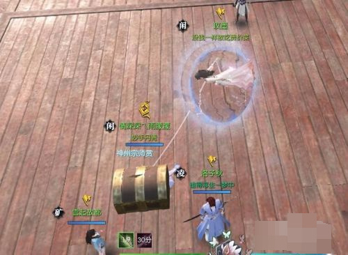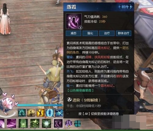 4、玩家可以先对队友释放一个落霞的技能,然后再使用风摇筝技能挂到队友身上,这样玩家就可以持续为所有队友加血了。