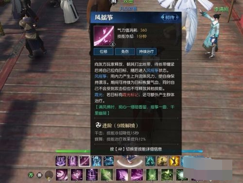 1、使用风摇筝这个技能的方法很简单,先将风摇筝技能拉入玩家的游戏的技能栏。