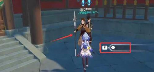 到达标记地点后,我们按下F键和嘉义进行对话