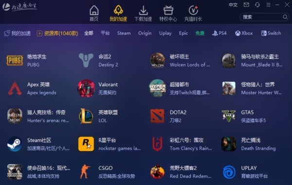 2、支持过千款游戏的加速,游戏玩家只需要在客户端搜索相对应的游戏,点击即可开展加快,使用雷神加速游戏,还能够更快速地下载到自己想要的游戏,降低等候的时长,非常实用。