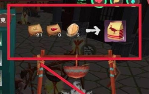 6、烹饪锅放入以上3种材料,点击制造一个