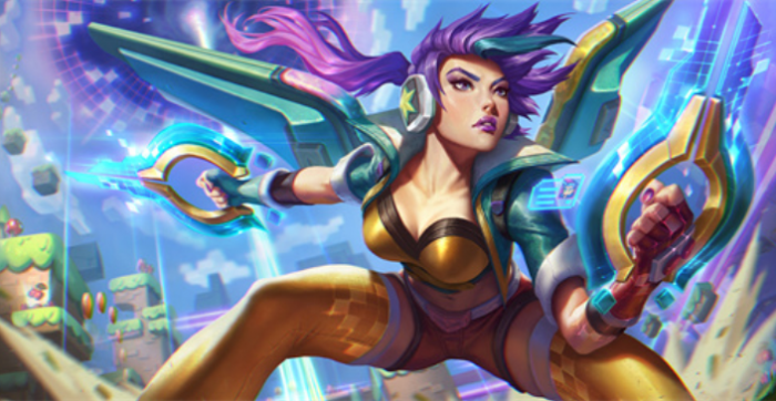这是K/DA卡莎的升级版,和K/DA同一种建模,不过配色和发型、服饰做了微调,看起来更加时尚,技能特效也变成耀眼的金色,缺点是获取难度高。