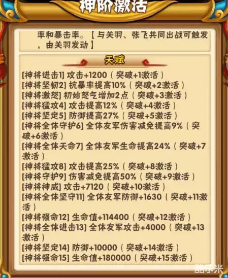 点评:很多人觉得关羽攻击加的好多好牛逼,而且突8成型快,但是也有缺点就是生存能力基本没啥提升,大家可以自己取舍。