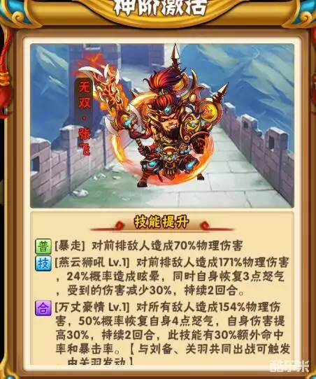 点评:属于蜀国刘关张必带的武将,光环较差,