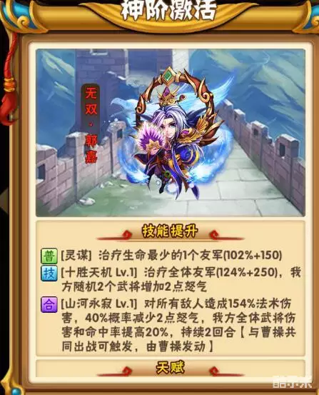 点评:讲道理的说,大家上郭嘉一般不会关心他光环是什么,而且重点在于他给力的技能