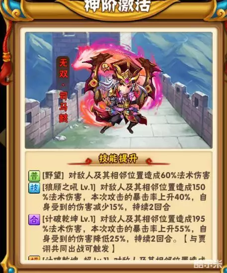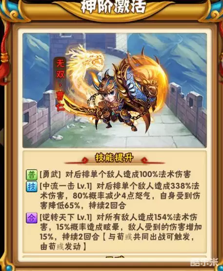 点评:比较鸡肋的光环武将,看着全能,实际上没啥用。
