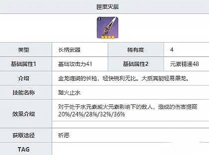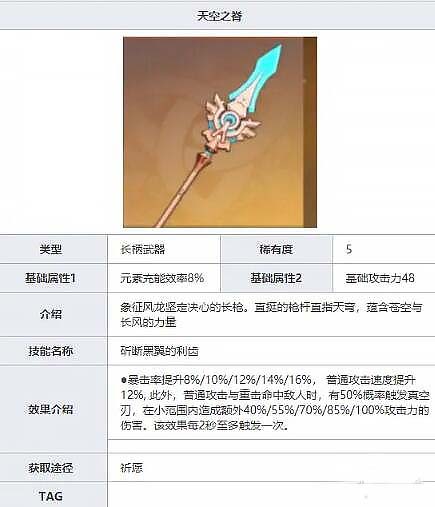 元素精通词条和技能的属性对香菱来说都非常合适,如果没有天空之脊,非常推荐使用这把武器作为副C香菱的武器来使用,如果精炼程度较高,有没有天空之脊都没关系。作为副C来说,这把武器真的太合适了,主推荐。